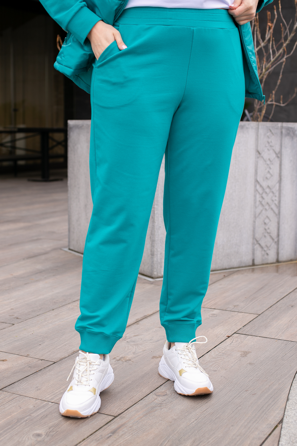 Спортивные брюки прямого кроя, немного заужены к низу. Широкий трикотажный пояс на резинке придает модели дополнительный комфорт при использовании. Модель с удобными боковыми карманами и манжетами по низу. Благодаря высокой посадке и широкому поясу на резинке, изделие хорошо сядет на любую фигуру. Удобные трикотажные брюки универсальны и незаменимы в повседневной жизни.