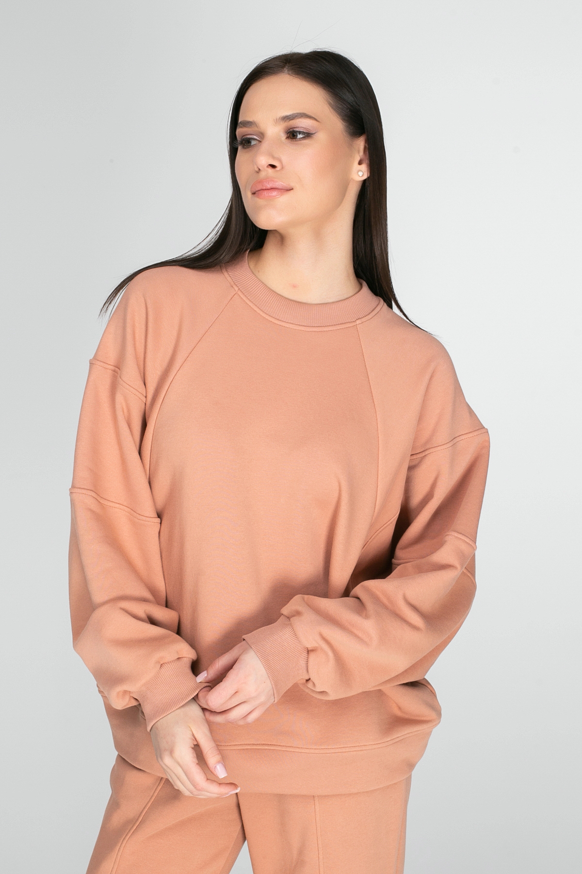 Джемпер женский свободного силуэта с летучей мышью! Этот стильный и модный гардеробный предмет станет отличным выбором для создания ярких и стильных образов. Его особенностью являются декоративные швы на рукаве, которые добавляют изюминку в дизайн изделия. Кроме того, на спинке джемпера присутствует декоративная силиконовая нашивка. Низ рукава и горловина обработаны притачным ластиком. Притачной пояс из основного полотна. Такой джемпер идеально сочетается со джинсами, брюками или шортами, позволяя создавать различные образы для разных случаев.